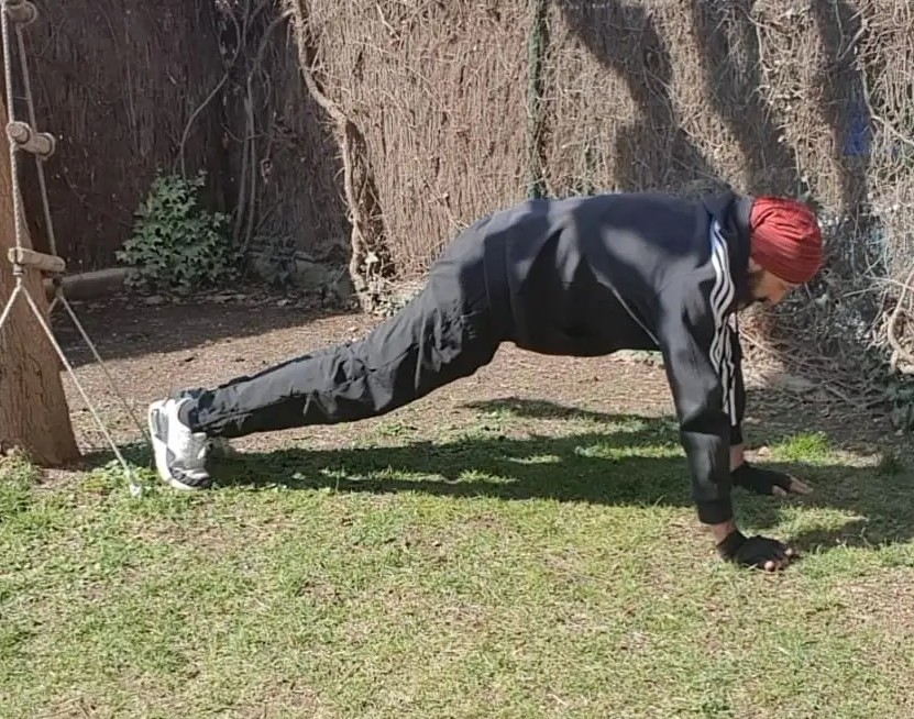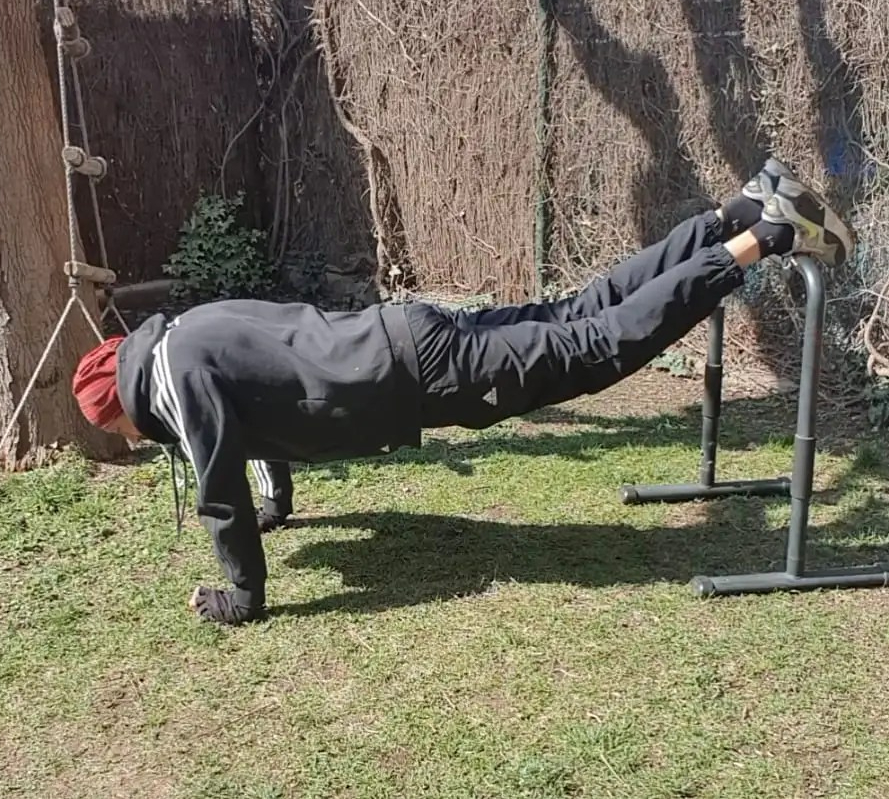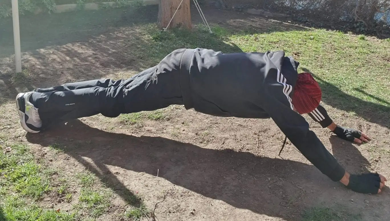 - 45″ Elbow plank.