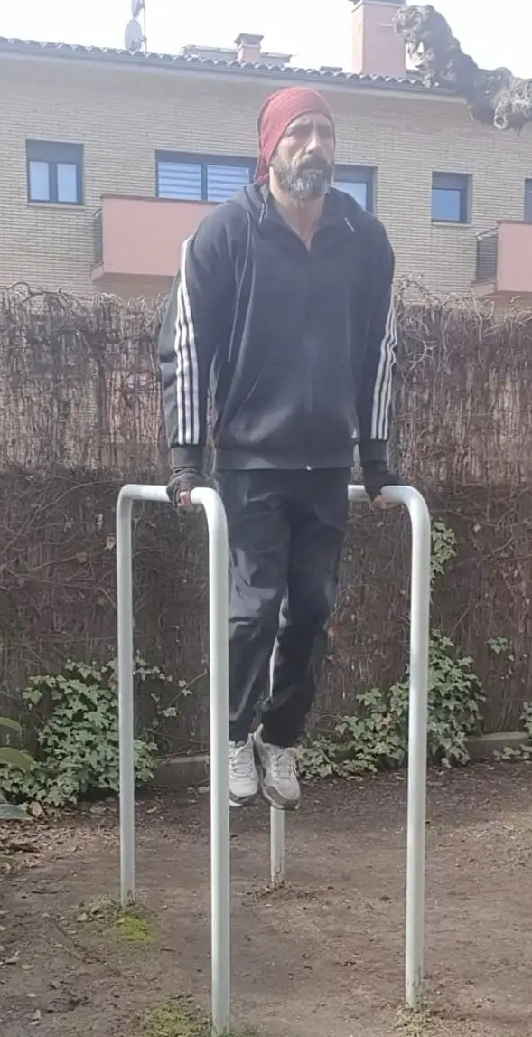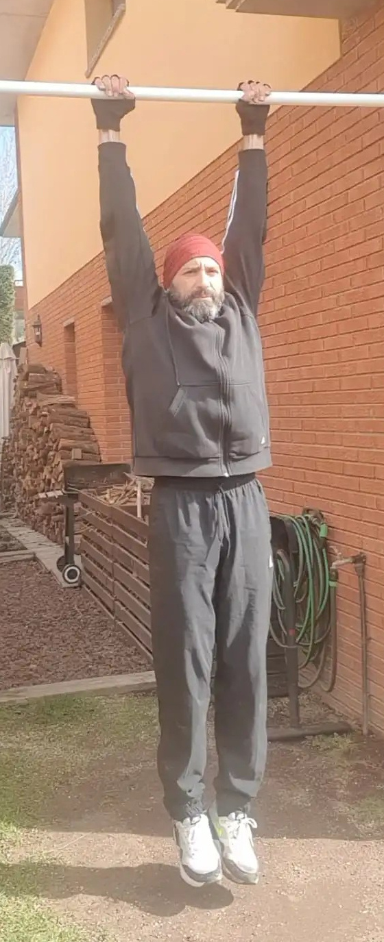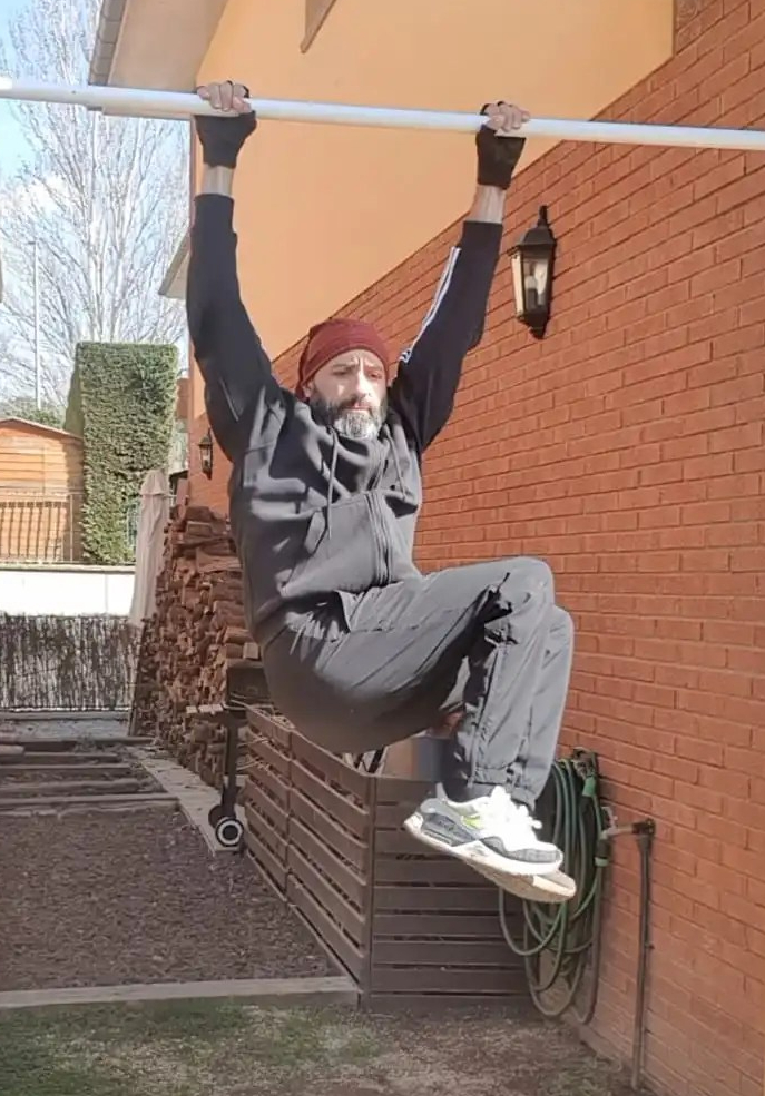 - 10 L-sit rises colgado en barra alta.