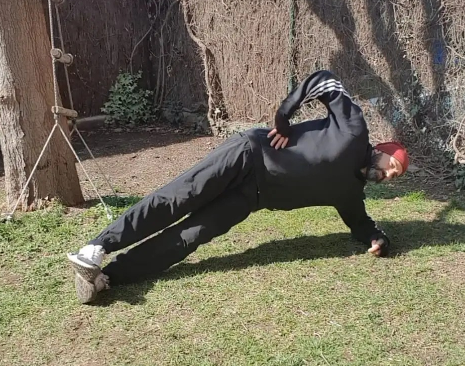 - 20 Side plank twist 10/10.