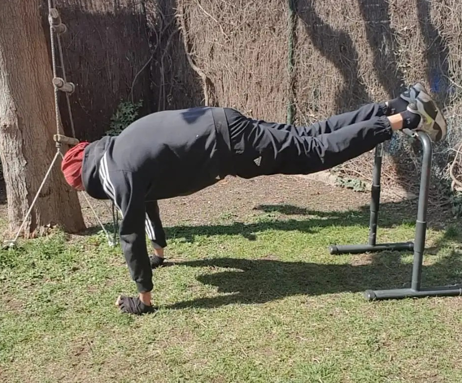 - 20 Reverse plank knee up 10/10.
