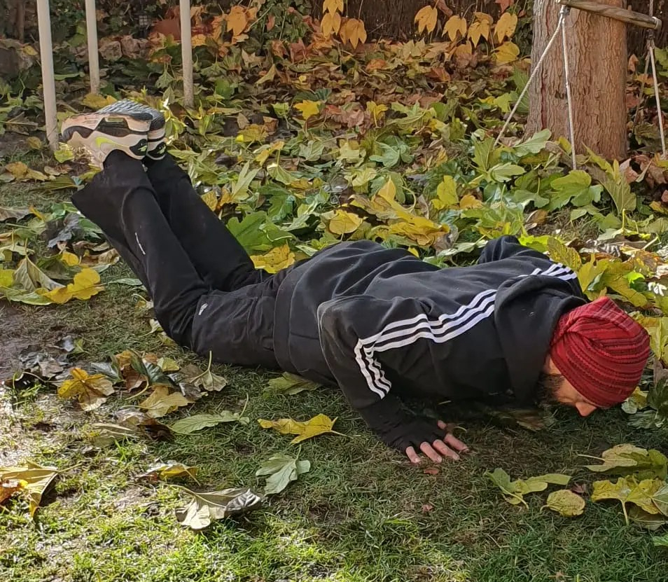 - 12 Knee wide push up.